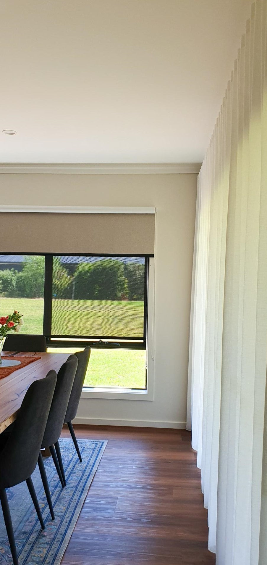 Screen blinds also provide day time privacy whilst maintaining your ability to see outside. Reducing sun glare and direct sunlight into your home, protecting your furniture and flooring.