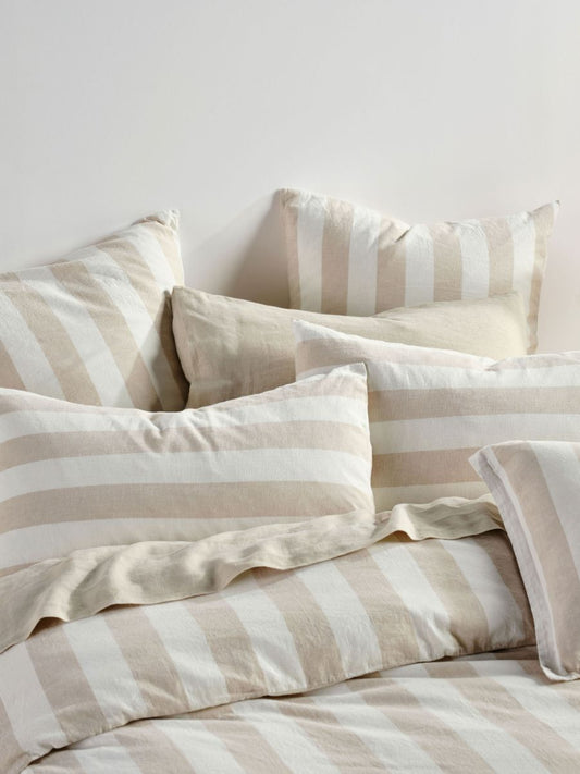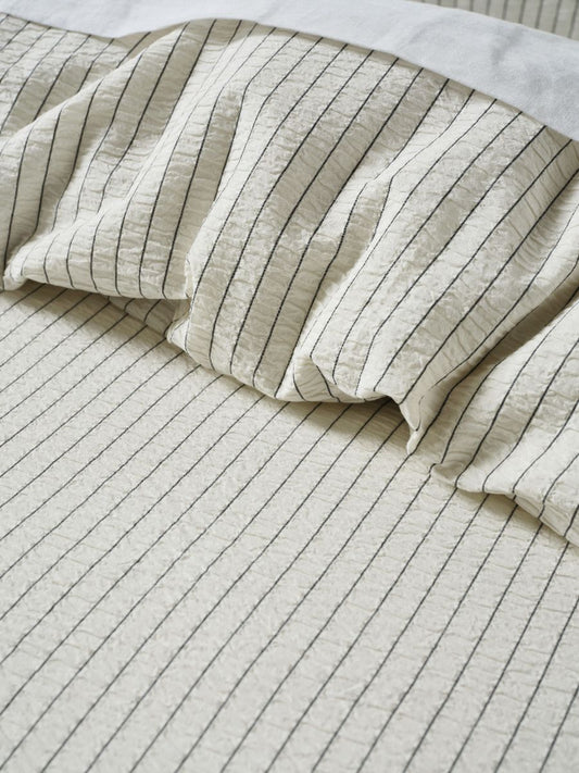 Vintage Stripe Pesto Quilt Cover Set Queen