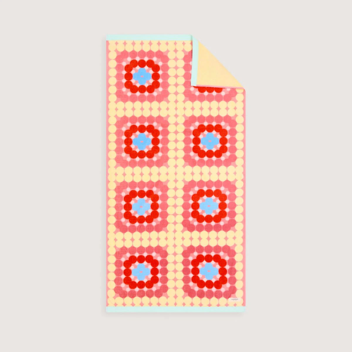 Inspired by your favourite crochet blanket, the Flips Kids Beach Towel is crafted from Australian cotton with a velour face and terry reverse. It features a printed design on the face and a plain colour reverse.