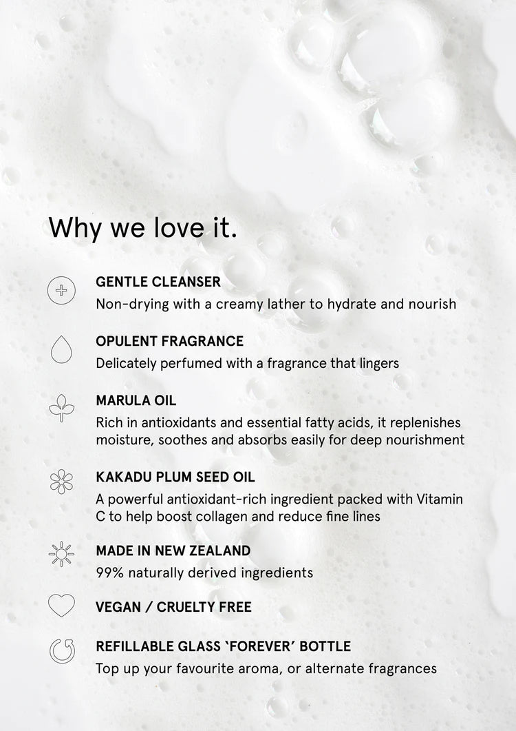 Top up and revel in this luxuriously lathering hand & body wash refill. Cleanse and perfume with an addictive combination of bright blooms and berries intertwined with a dark and complex base.